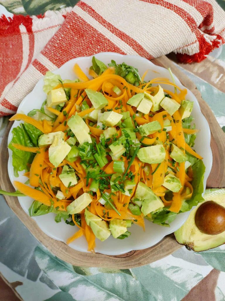 A fare da base, lattuga croccante, asparagi, finocchio, peperone, ravanelli e altre verdure a piacere, che regalano fibre, idratazione e leggerezza. Ma la vera protagonista è la salsa: una tzatziki raw, cremosa e luminosa, preparata con germogli di semi di girasole, zucchina e capperi. I germogli, lo sapete, sono veri superfood naturali: ricchissimi di enzimi, vitamine e minerali in forma altamente biodisponibile. Una vera scossa di energia viva per il nostro organismo!